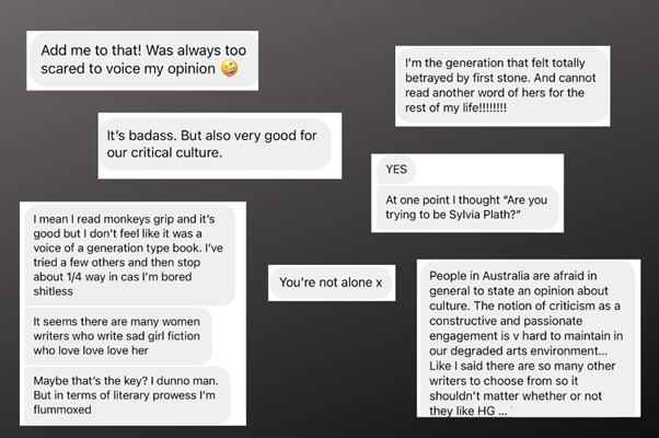 The related question I’ve been obsessing over is why I felt so exposed when I shared my lukewarm response to reading Garner online. And ‘exposed’ is putting it lightly—I braced for impact and assumed I would be trolled for being a ‘bad reader’, for underrating a paragon of Australian literature, for saying my quiet thoughts out loud.